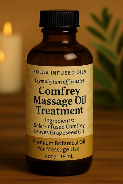 Comfrey (Symphytum officinale) is a perennial herb long respected in traditional herbalism for its restorative properties. Sometimes called “knitbone,” it has been used to support the body’s natural healing processes, particularly for muscles, joints, and minor injuries. The roots and leaves are rich in allantoin, a compound known to encourage cell regeneration and tissue repair, making comfrey a popular choice for salves, compresses, and infused oils that nourish and protect the skin. In folk medicine, it was also applied externally to ease bruises, sprains, and inflammation. Energetically, comfrey is regarded as grounding and strengthening, symbolizing renewal, resilience, and the body’s innate ability to mend.